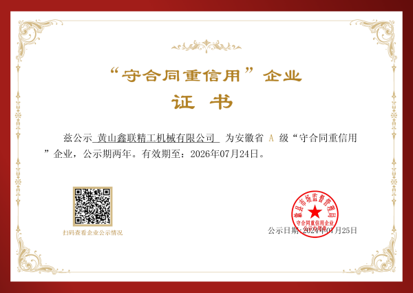 根据 《安徽省“守合同重信用”企业公示暂行办法》和《安徽省市场监督管理局关于开展2024年度“安徽省守合同重信用”企业公示活动的通知》(皖市监办发 〔2023〕7号)规定,我公司申报了A级“安徽省守合同重信用”企业,成功获批。